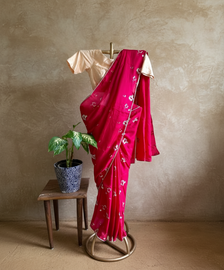 Rani pink blockprinted chanderi silk saree
