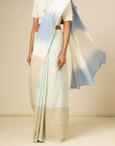 The saree comes with a contrast cotton mulmul blouse piece fabric.