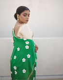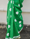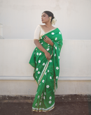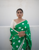 Green blockprinted chanderi silk saree