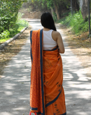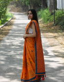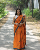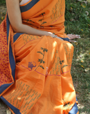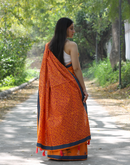 - Orange summer candy block printed mulmul saree