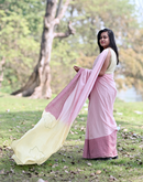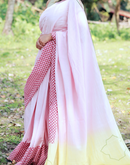 Pink yellow blockprinted khadi cotton saree