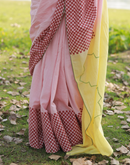 - Pink yellow blockprinted khadi cotton saree