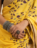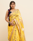 Yellow blockprinted cotton mulmul saree