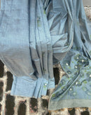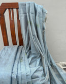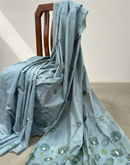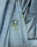Grey-Blue chanderi cotton lotus saree