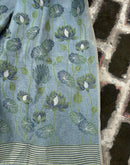 This beautiful and soft greyish blue cotton chanderi saree is adorned with intricate lotus motifs scattered equally across the saree with a beautiful lotus stem design woven into the aanchal/palla.