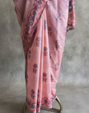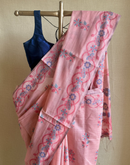 Peach chanderi cotton jamdani saree
