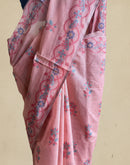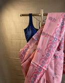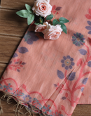 This beautiful peach cotton chanderi jamdani saree have beautiful floral story all over its surface. The border also has a beautiful intertwining floral design, The saree is a beauty not to be missed. It is airy and allows unhindered functionality.