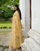 This beautiful yellow cotton chanderi jamdani saree have beautiful floral story all over its surface. The border also has a beautiful intertwining floral design, The saree is a beauty not...