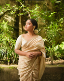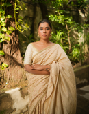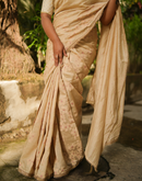 Beige blockprinted chanderi silk saree