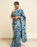 Blue blockprinted cotton mulmul saree