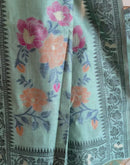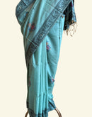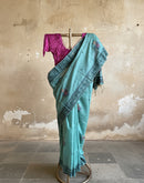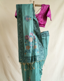 Teal chanderi cotton jamdani saree