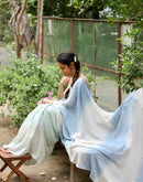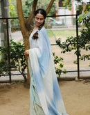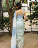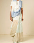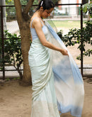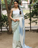 Blue endless summer block printed mulmul saree