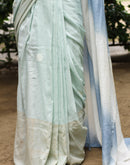 The saree comes with a contrast cotton mulmul blouse piece fabric.