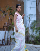 Cream yellow striped handwoven linen saree
