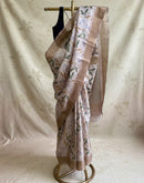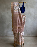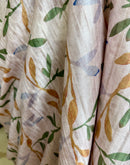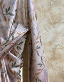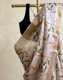 This saree will make you feel like a royal princess. The poise with which it will drape on your body will compel you to pass it on to your loved ones. Saree is dreamy and rich in texture and weave. the light leafy print with a fading effect is its element of abstraction.