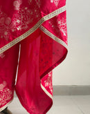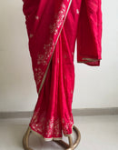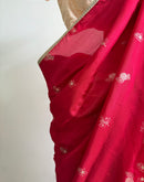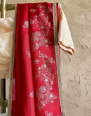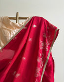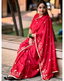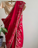 Crafted in a vibrant hue of red. This saree is crafted in Silk. The saree holds the hand printed in a subtle gold with intricate craftsmanship which makes it exclusive...
