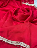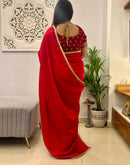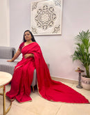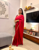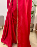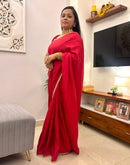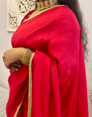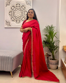 Beautiful rich red silk saree for all your occasions is here. The saree can be styled in multiple ways . A beautiful lace runs through the saree.
