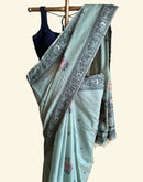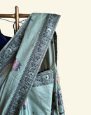 Sage green chanderi cotton jamdani saree