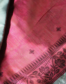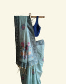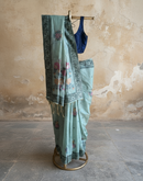 This beautiful sage green finely woven cotton chanderi jamdani saree comes with a detailed border and woven delicate floral motifs all over. It is balanced with bigger floral motifs on the aanchal/palla. It is a thoughtfully designed saree for you women. It can be styled up or styled down. This saree feels like a second skin making the soul feel light due to its light weight texture