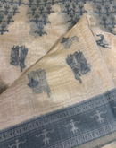A soft, earthy intricately woven Chanderi saree with varli art, this saree is as special as the art on it. It is a proud represntator of our culture and heritage. Light as feather and richness of Chanderi texture makes it a piece of art
