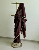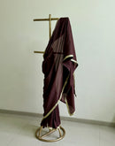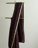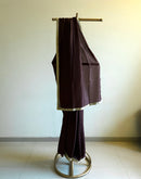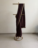 Subtle and minimal this saree in a dark brown is crafted in self silk fabric and detailed with a jacquard Zari lace. You can style it up or down as per your mood it will adapt to your moods.