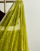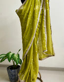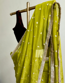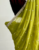 For the Princess in you this beautiful this silk organza saree is made to give you a sure shot Show stopper movement. The saree has beautiful paisleys over all as a beautiful design element. The saree has a beautiful lace detailing to it.
