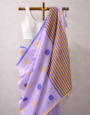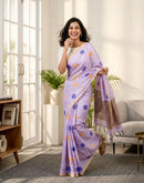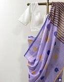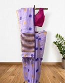 Buttery soft feel and a happy vibes in a beautiful lavender hue, the saree comes with a blouse piece fabric along.