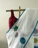Polkas are classic! All seasonal! This linen cotton white beauty is a classic no brainer saree for your week days. East to drape super light it comes with a blouse piece fabric