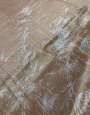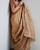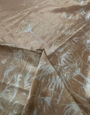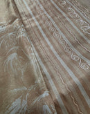This mustard gold hue saree with a branchy effect over all on the saree is a saree for the modern lady who deeply values tradition. The saree is light subtle with no extra drama. The saree has an overall sheen to it. The saree is accentuated with a zari chain stitch over the motifs here and there. The print is its element of abstraction